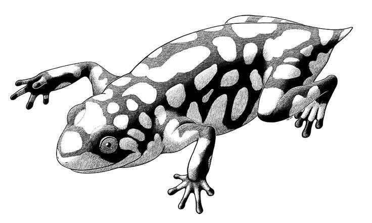 Triadobatrachus là “tổ tiên” của loài ếch hiện đại. Hóa thạch của nó được xem là mắt xích chuyển tiếp giữa kỳ giông và ếch, giúp giới khoa học hiểu cách ếch tiến hóa từ các loài lưỡng cư nguyên thủy. Ảnh: Pinterest.