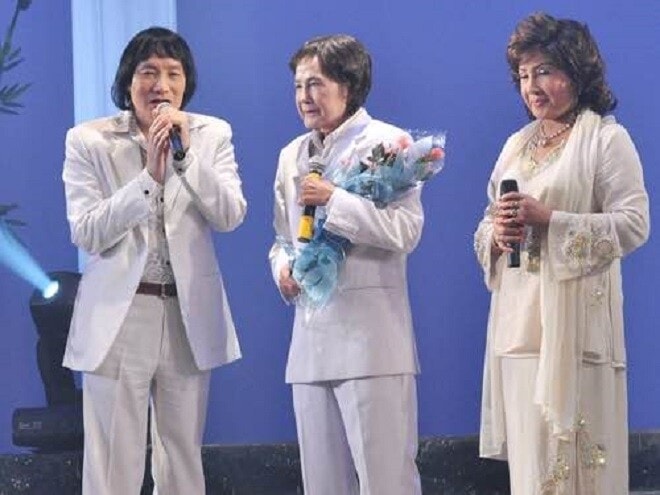 Cố nghệ sĩ Tấn Tài bên các đàn em - NSND Minh Vương, NSND Lệ Thủy.
