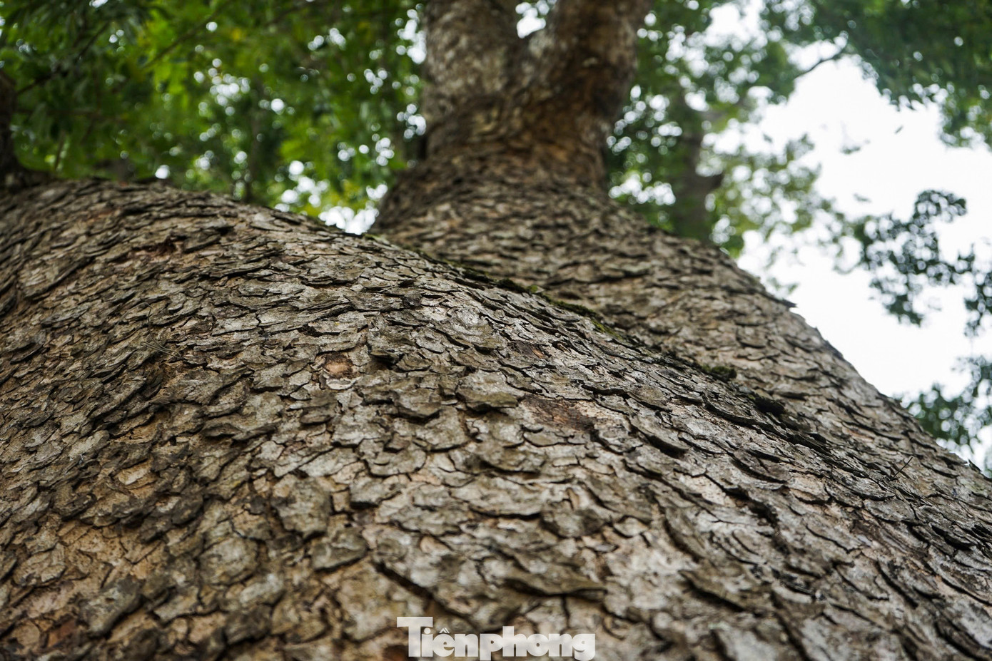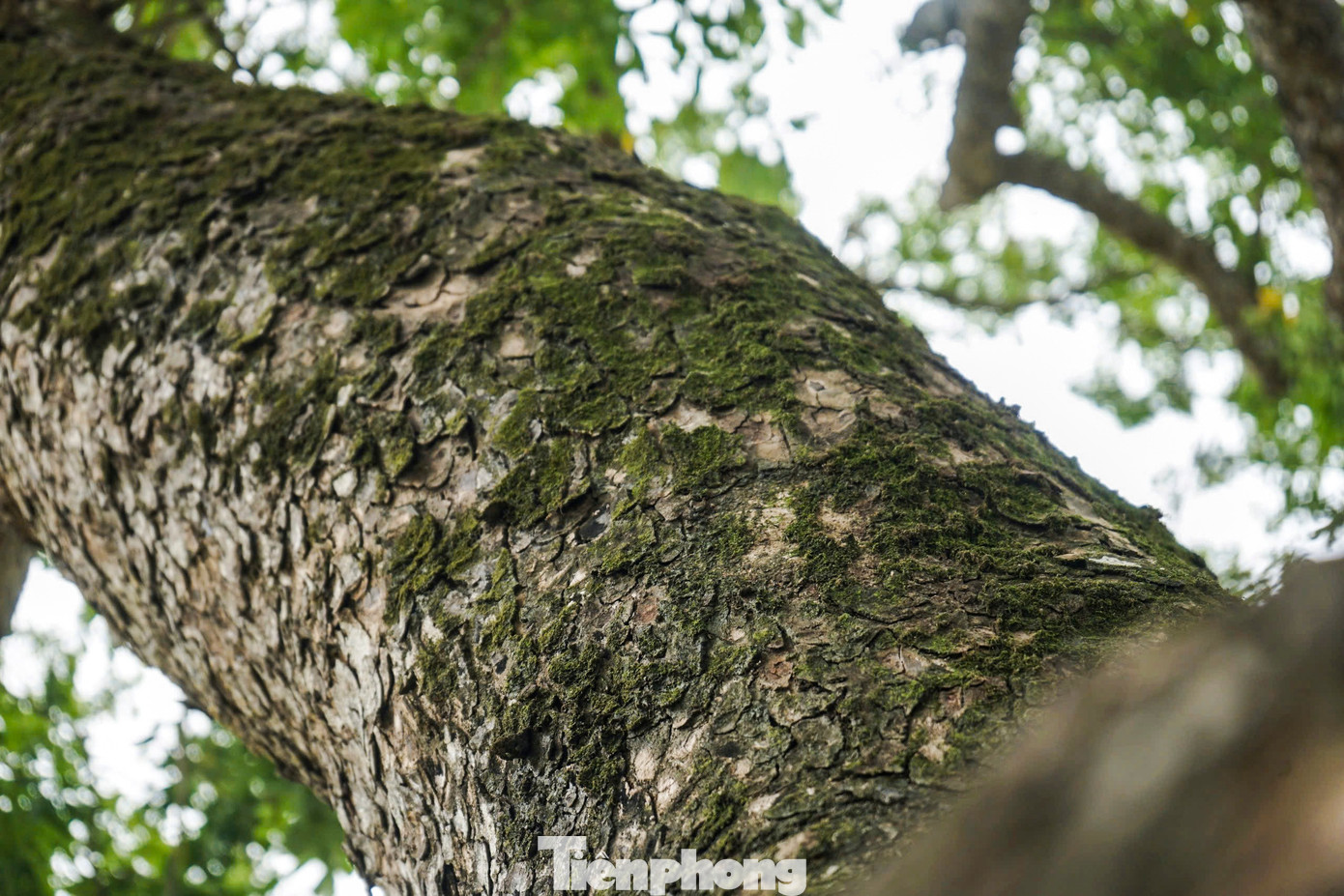 Gốc và thân cây nổi nhiều u cục, vỏ cây xù xì, một số cành phủ rêu phong, tạo vẻ cổ kính.