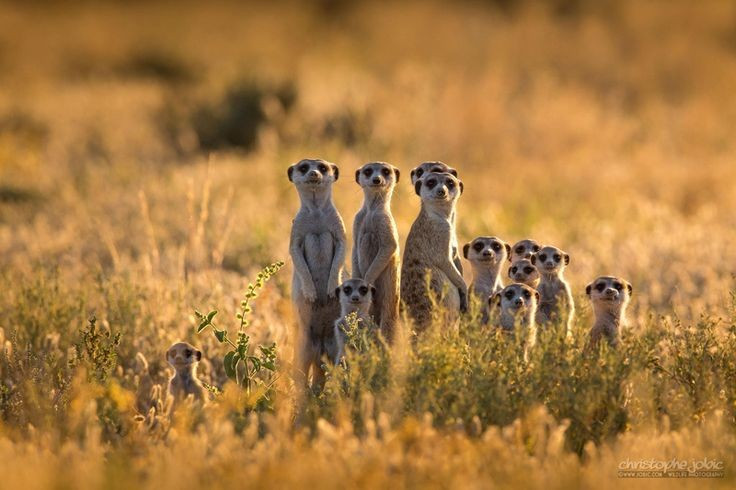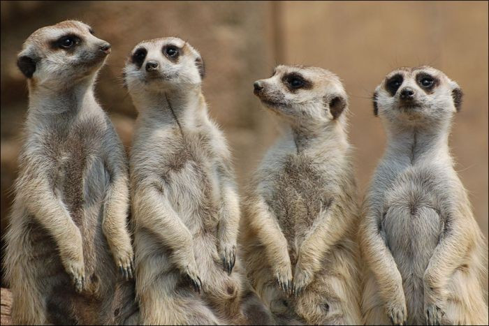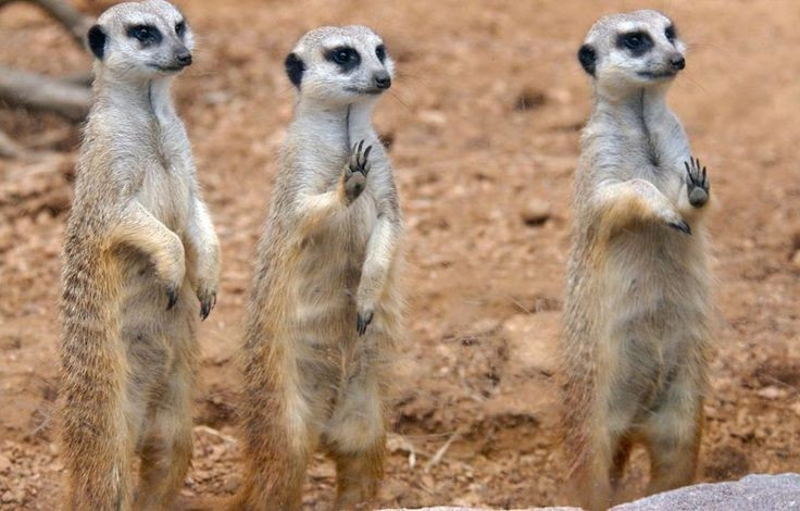 Có “lính canh” luôn túc trực cả ngày. Các cá thể canh gác sẽ đứng thẳng bằng hai chân, quan sát bầu trời và mặt đất để cảnh báo đồng loại khi có kẻ săn mồi. Ảnh: Pinterest.