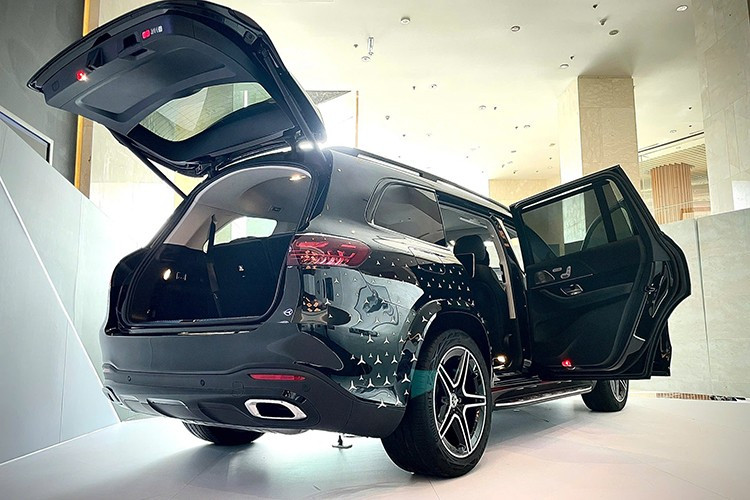 Các chi tiết như viền cửa sổ, cản trước và gương chiếu hậu được hoàn thiện màu đen bóng, tương phản nổi bật trên thân xe. Bộ mâm AMG 21 inch 5 chấu kép tạo điểm nhấn cá tính, giúp chiếc SUV trở nên nổi bật trên mọi cung đường.