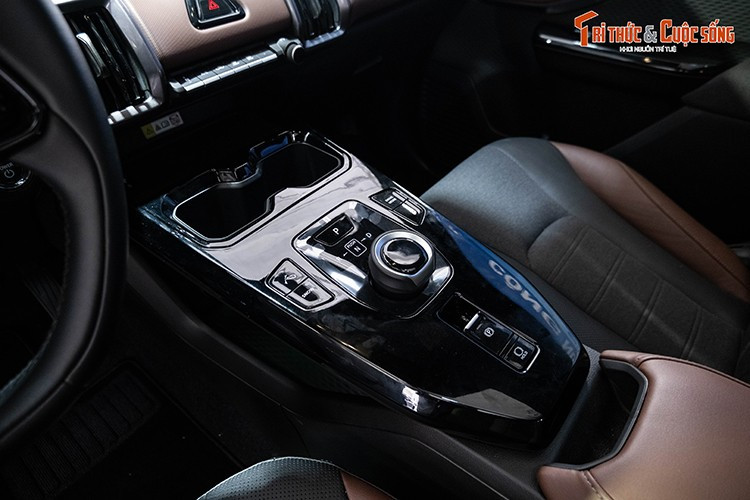 Ở trung tâm táp-lô là cụm điều khiển hệ thống điều hòa dạng phím vật lý. Núm xoay điều chỉnh âm lượng đặt cạnh bên. Bệ trung tâm bố trí cần số điện tử dạng núm xoay, phanh tay điện tử và nút kích hoạt Auto Hold...