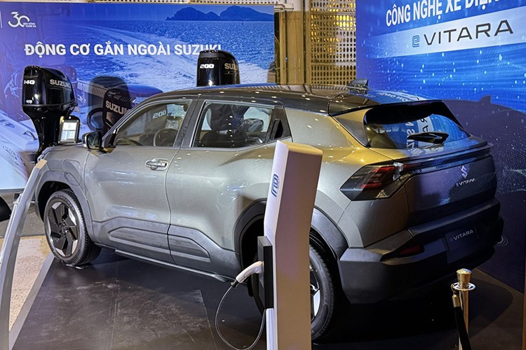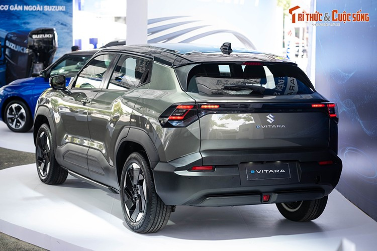 Là mẫu xe thuần điện, Suzuki eVitara không có lưới tản nhiệt thông thường, chỉ có hốc gió ở cản dưới để làm mát pin và các linh kiện vận hành. Bộ mâm xuất hiện xe tại Việt Nam thiết kế kín nhằm tối ưu tính khí động học. Tay nắm cửa phía sau được ẩn ở cột C khiến phần thân trở nên liền mạch và tối giản hơn. Đuôi xe có phần đèn hậu LED nối liền sang hai bên.