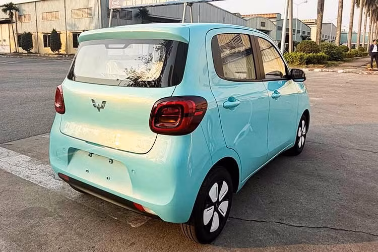 Hốc gió trung tâm nhỏ xuất hiện trên cản trước và cổng sạc nằm bên dưới logo màu bạc của thương hiệu Wuling. Bên cạnh đó là tay nắm cửa sơn cùng màu thân xe, vành thép 13 inch đi kèm ốp mâm hình bông hoa năm cánh, cụm đèn hậu có thiết kế tương tự đèn pha và cánh gió mui ngắn.