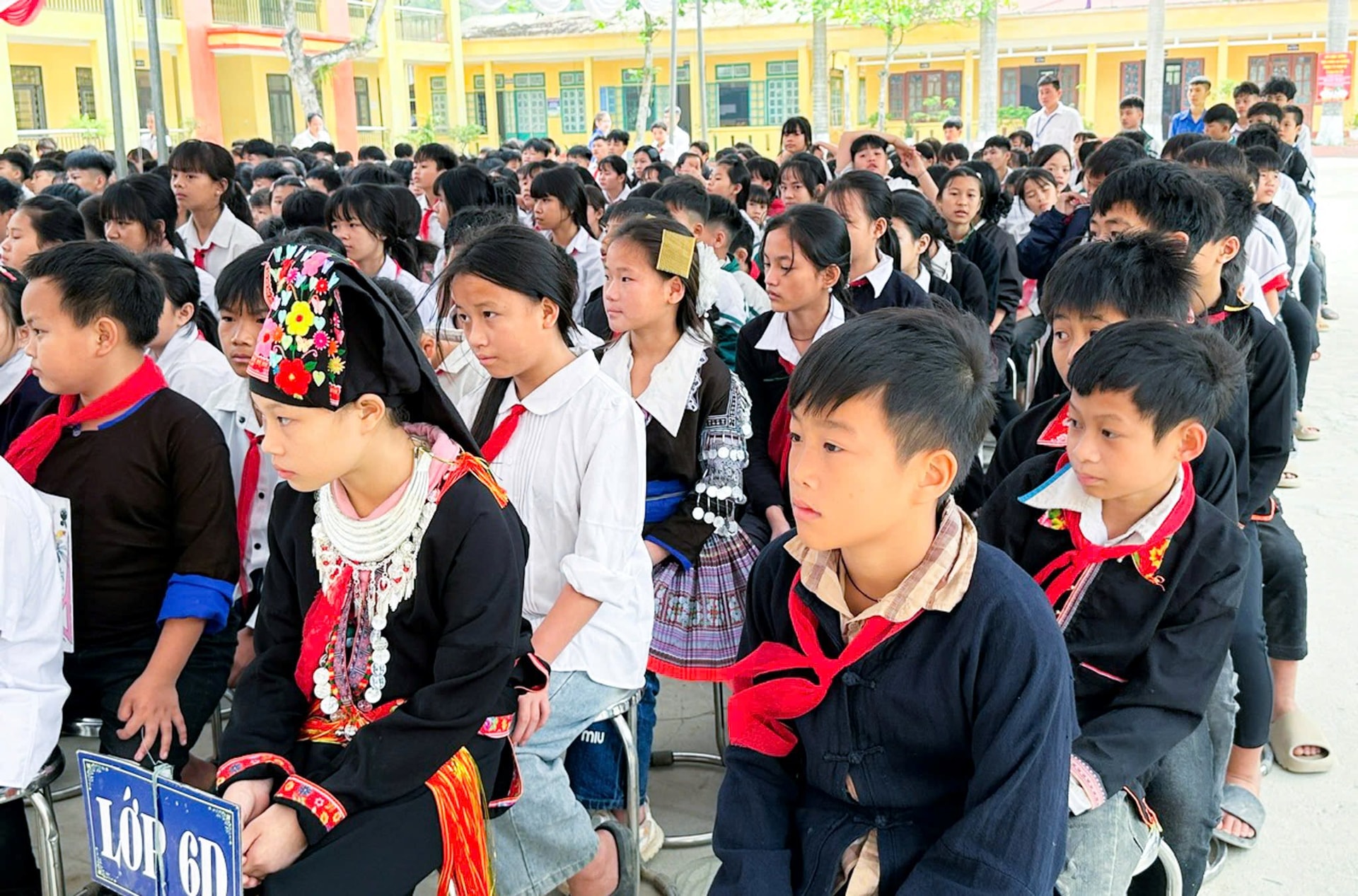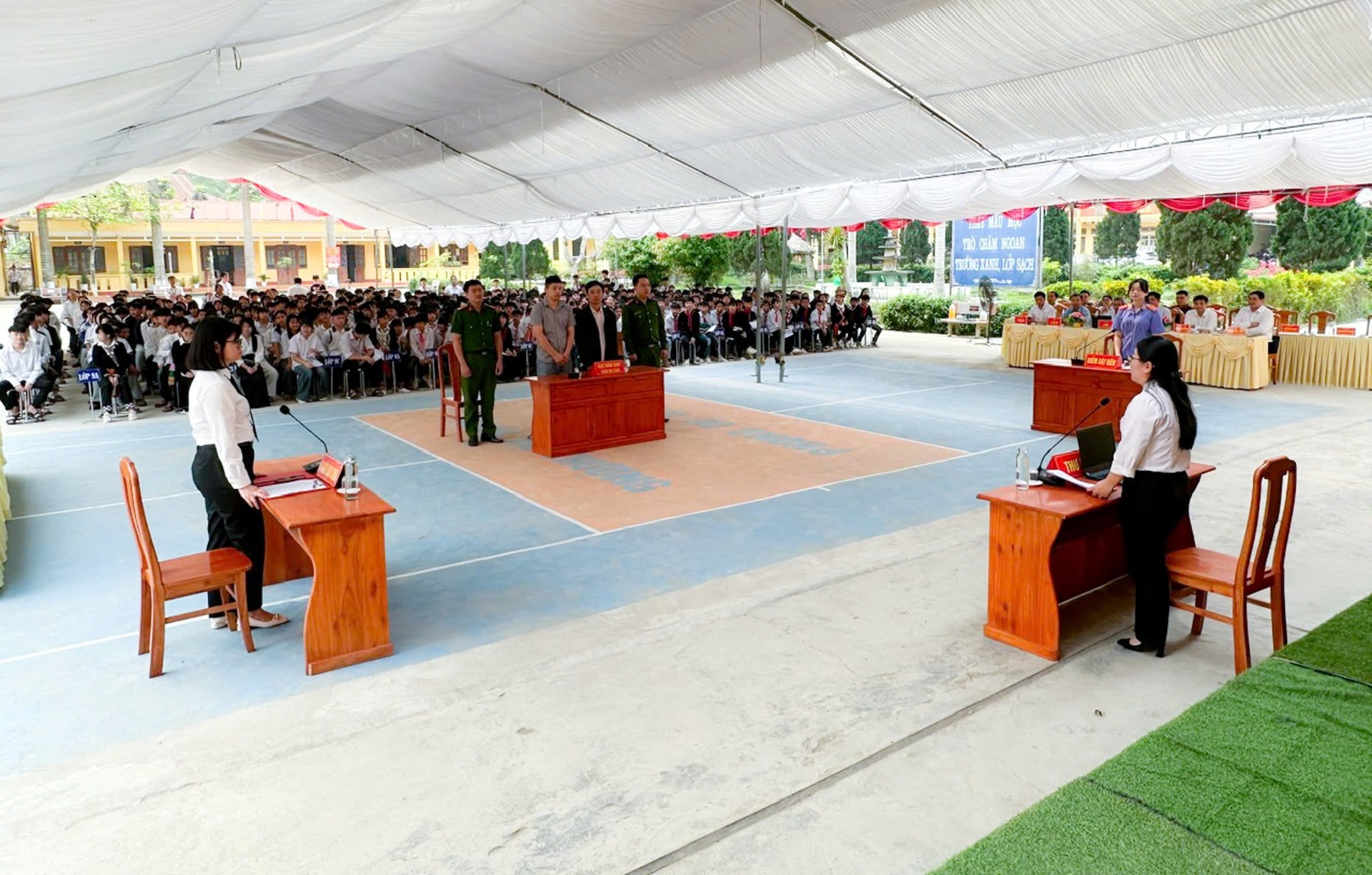 Phiên tòa giả định thu hút hơn 600 học sinh Trường THCS Phong Dụ Thượng, xã Phong Dụ Thượng, tỉnh Lào Cai.