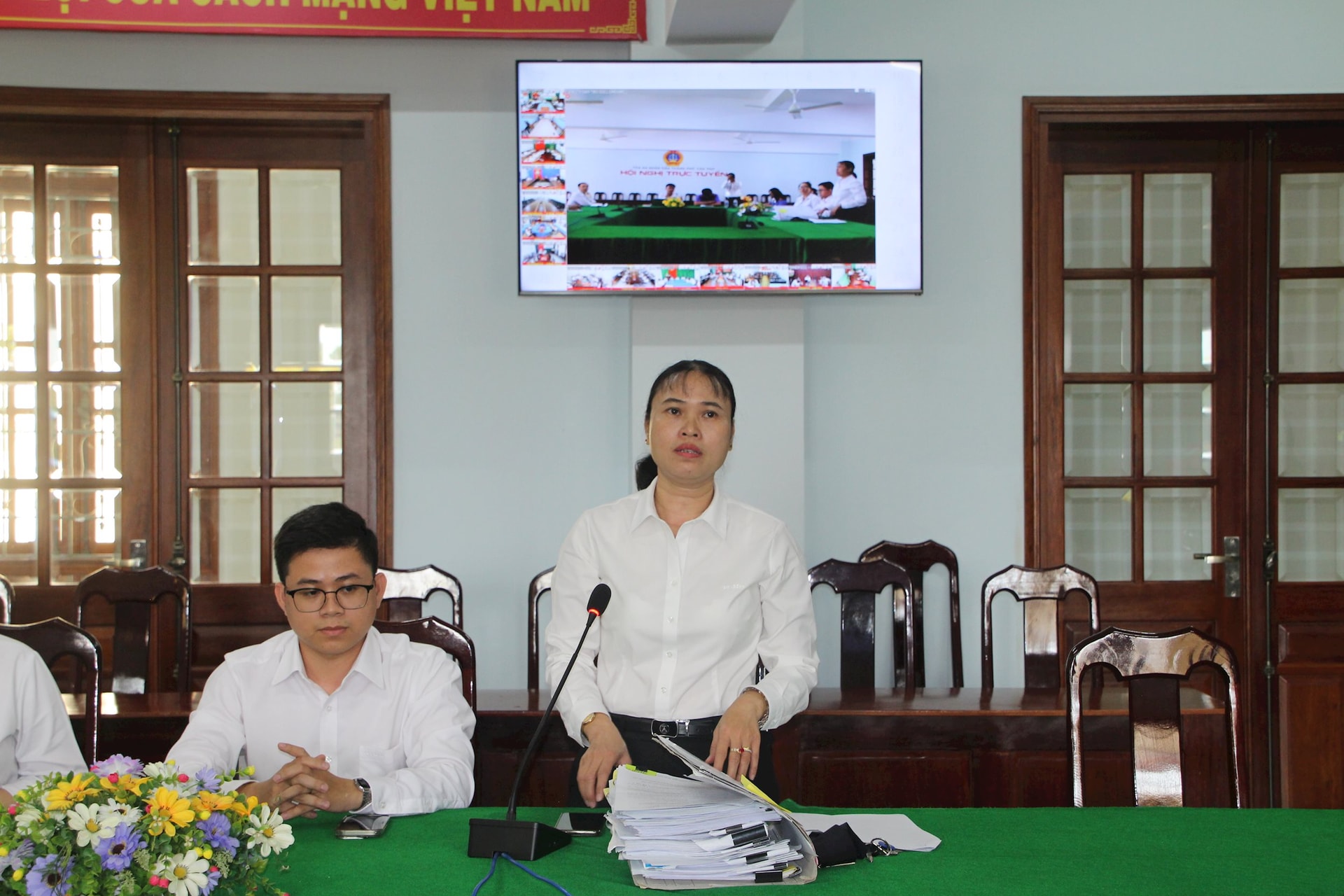 Thẩm phán Trịnh Thị Bích Hạnh, chủ tọa phiên tòa phát biểu ý kiến tại cuộc họp.