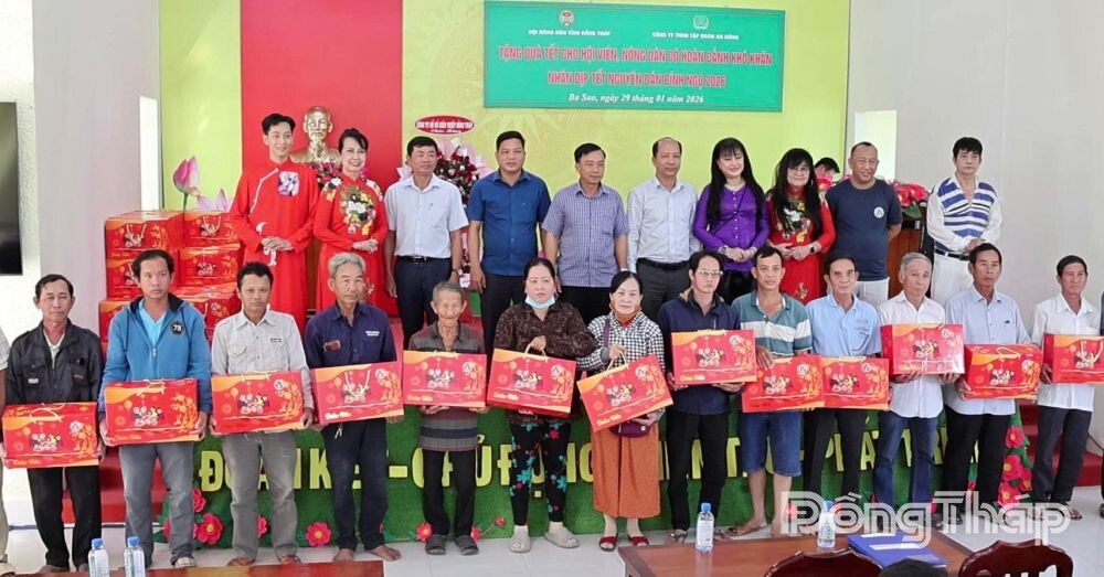 Hội Nông dân tỉnh Đồng Tháp phối hợp cùng Công ty TNHH Tập đoàn An Nông tặng 100 phần quà tết cho hội viên nông dân khó khăn.