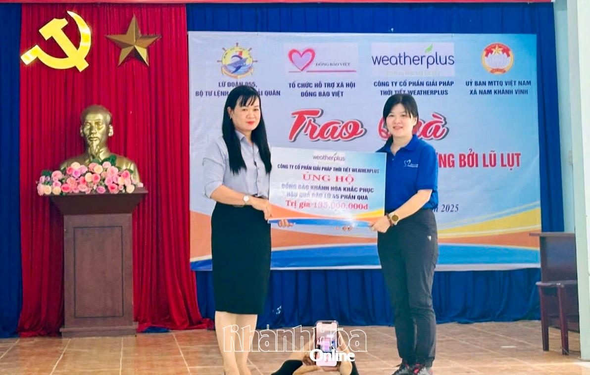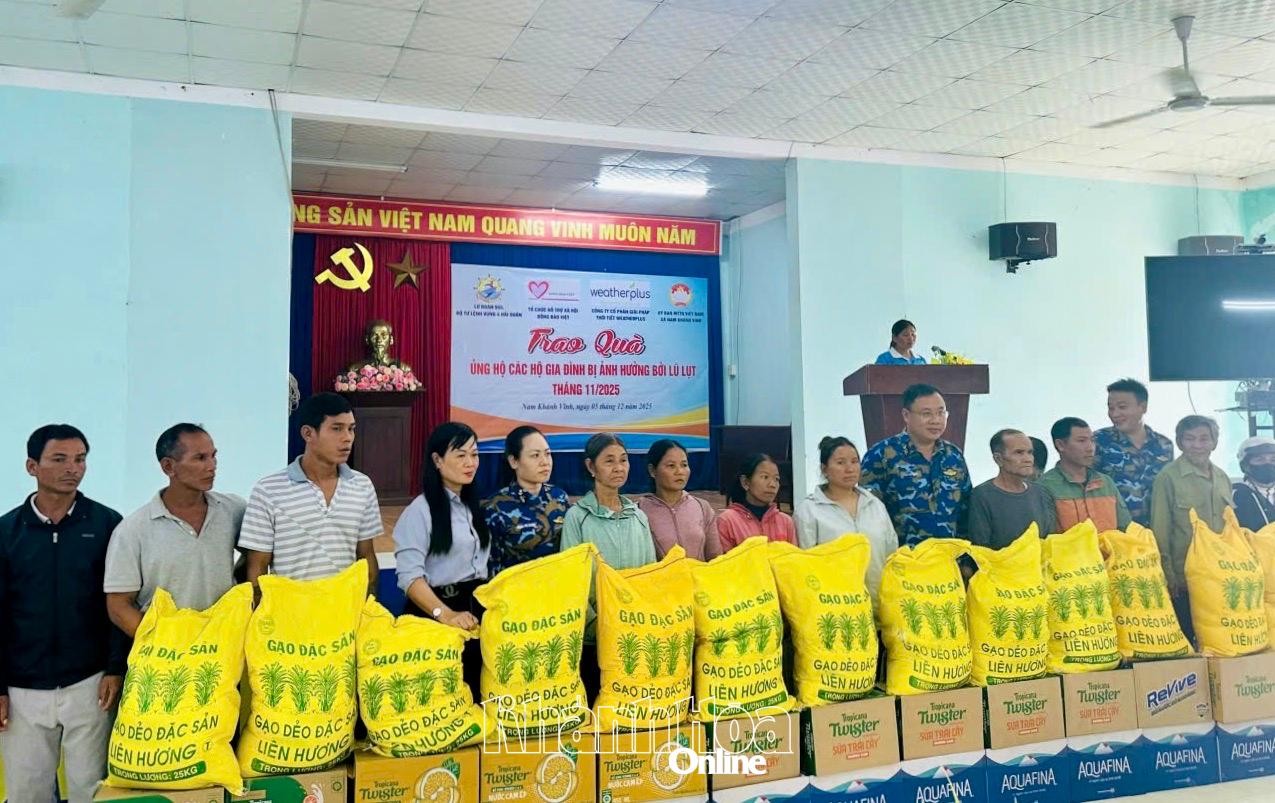 Ngày 5-12, Ủy ban MTTQ Việt Nam xã Nam Khánh Vĩnh, Lữ đoàn 955 (Bộ Tư lệnh Vùng 4 Hải quân), Tổ chức hỗ trợ xã hội Đồng bào Việt, Công ty Cổ phần Giải pháp thời tiết Weatherplus phối hợp tặng 100 suất quà, gồm các nhu yếu phẩm cho 100 hộ gia đình xã Nam Khánh Vĩnh bị thiệt hại do lũ lụt.