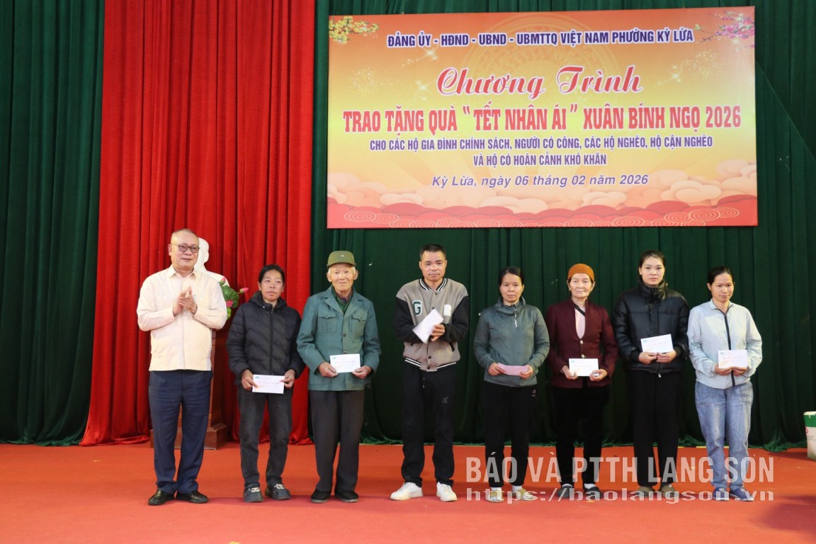 Chương trình tặng quà “Tết nhân ái” Xuân Bính Ngọ năm 2026 là hoạt động có ý nghĩa thiết thực, thể hiện tinh thần “tương thân tương ái”, “lá lành đùm lá rách” của cấp ủy, chính quyền phường Kỳ Lừa và các đơn vị, doanh nghiệp, tổ chức, cá nhân đối với hộ nghèo, hộ cận nghèo, gia đình chính sách, giúp người dân đón Tết cổ truyền của dân tộc vui tươi, đầm ấm hơn.