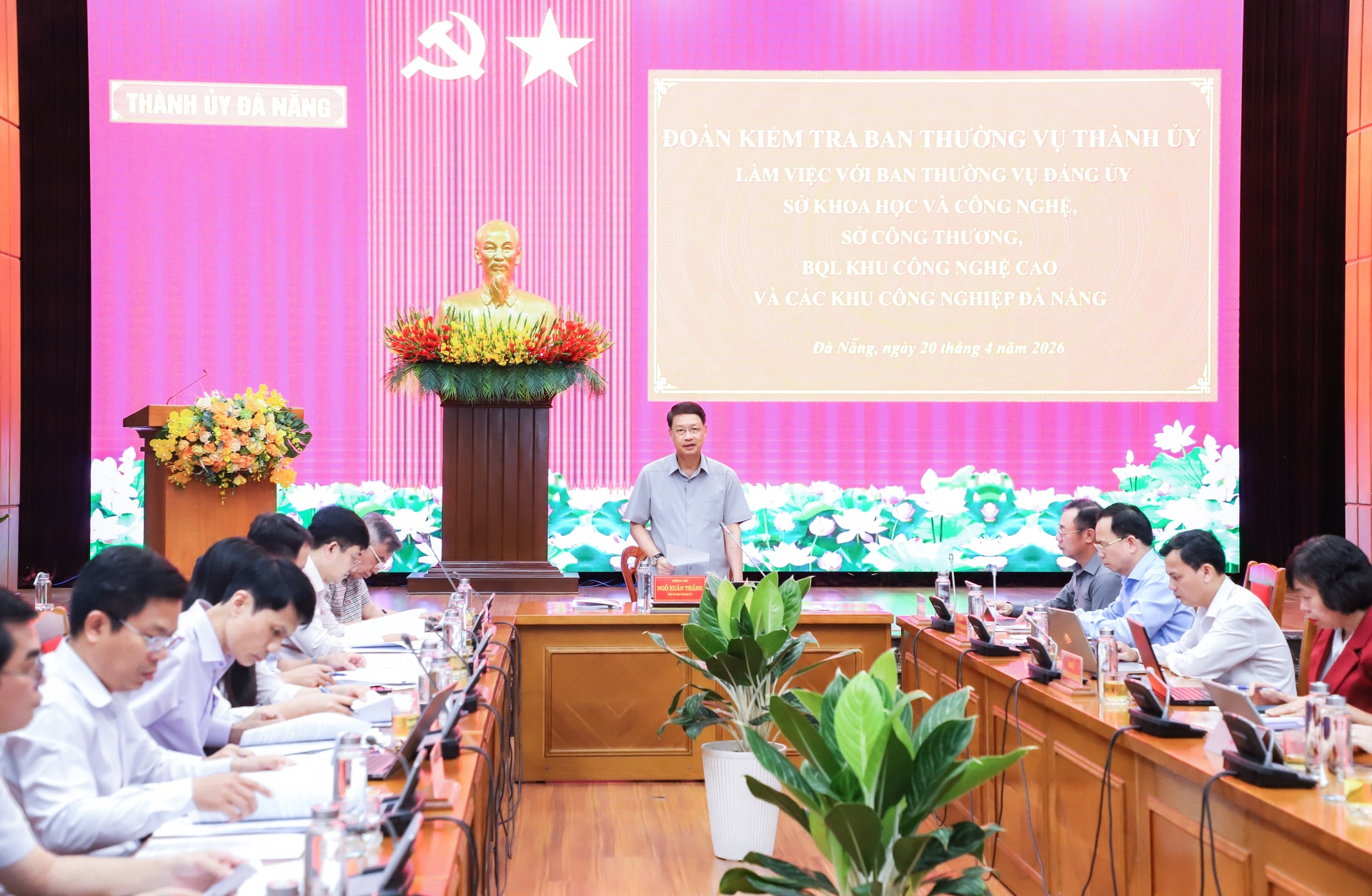 Phó Bí thư Thành ủy Ngô Xuân Thắng chủ trì buổi làm việc. Ảnh: NGỌC PHÚ