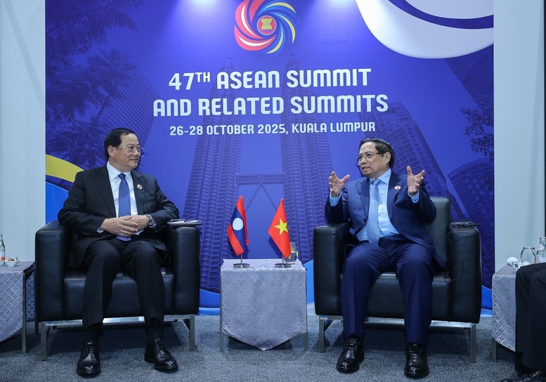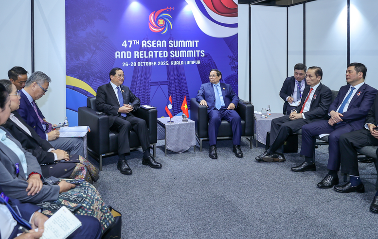 Thủ tướng Chính phủ Phạm Minh Chính gặp Thủ tướng Lào Sonexay Siphandone - Ảnh: VGP