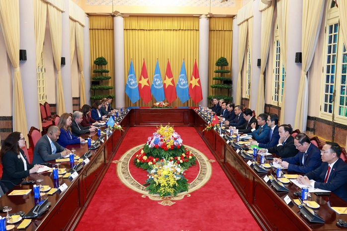 Tổng Thư ký Guterres khẳng định LHQ sẽ tiếp tục đồng hành, quan tâm, hỗ trợ các ưu tiên phát triển của Việt Nam; bày tỏ kỳ vọng Việt Nam sẽ phát huy hơn nữa vai trò, vị thế và tiếng nói của mình tại LHQ, đóng vai trò tiên phong góp phần định hình một thế giới đa cực, trong đó chủ nghĩa đa phương và các cơ chế quản trị toàn cầu hoạt động hiệu quả hơn, vai trò xứng đáng của các nước đang phát triển và các nền kinh tế mới nổi được đề cao hơn.