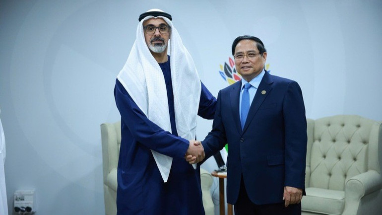 * Cùng ngày, Thủ tướng Chính phủ Phạm Minh Chính đã có cuộc gặp với Hoàng thái tử Abu Dhabi, Các Tiểu vương quốc Arab Thống nhất (UAE) Khaled bin Mohamed Al Nahyan.