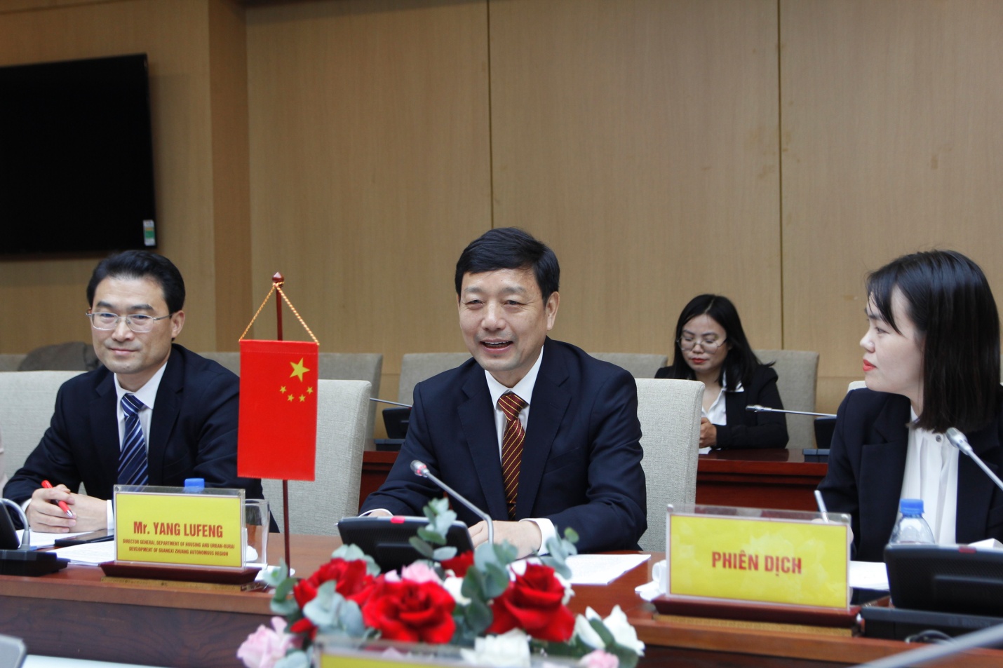 Ông Dương Lục Phong (giữa), Giám đốc Sở Nhà ở và xây dựng đô thị nông thôn tỉnh Quảng Tây mong muốn thúc đẩy hợp tác sâu sắc, thực chất với Bộ Xây dựng.