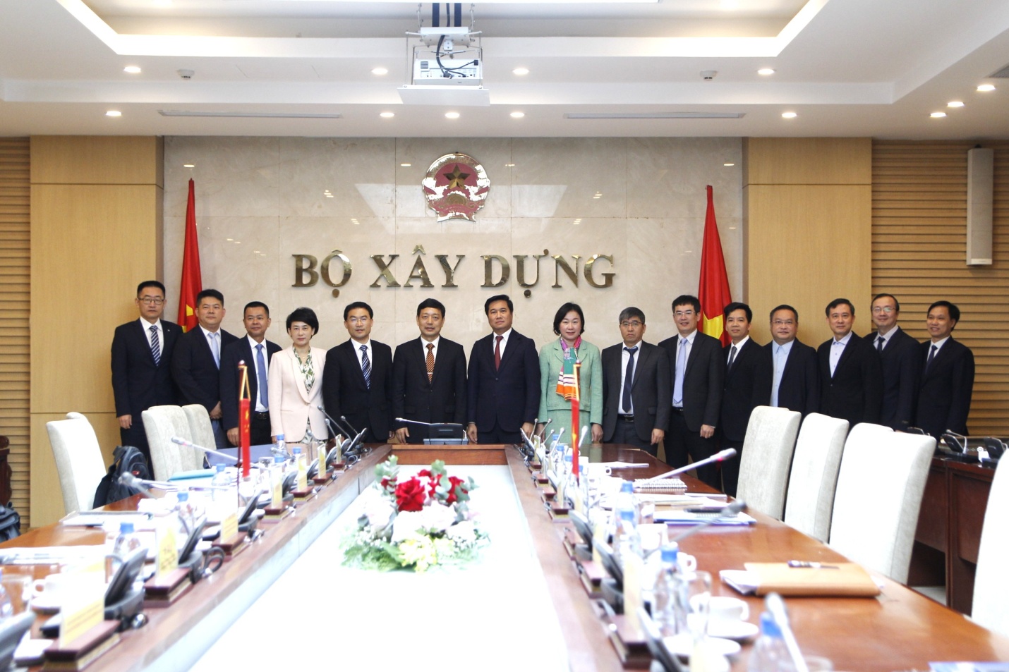 Lãnh đạo Bộ Xây dựng chụp ảnh lưu niệm với đoàn công tác Sở Nhà ở và xây dựng đô thị nông thôn tỉnh Quảng Tây.