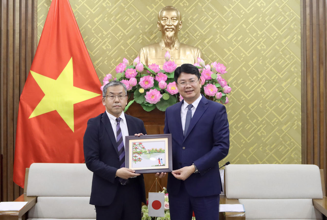 Thứ trưởng Nguyễn Thanh Tịnh tặng quà lưu niệm cho ông Tsukahara Masanori.