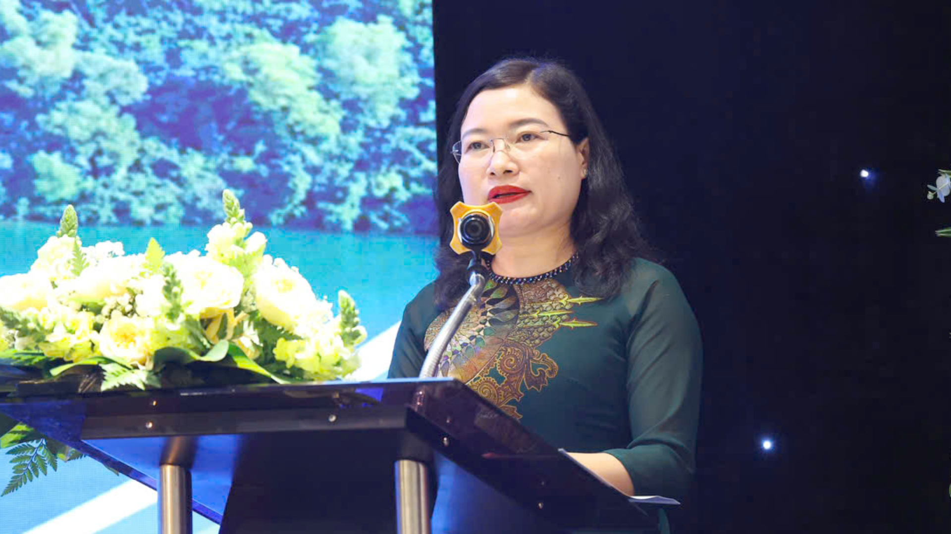 Bà Nguyễn Thị Nguyệt- Phó Chủ tịch UBND tỉnh Hà Tĩnh phát biểu tại Hội nghị.