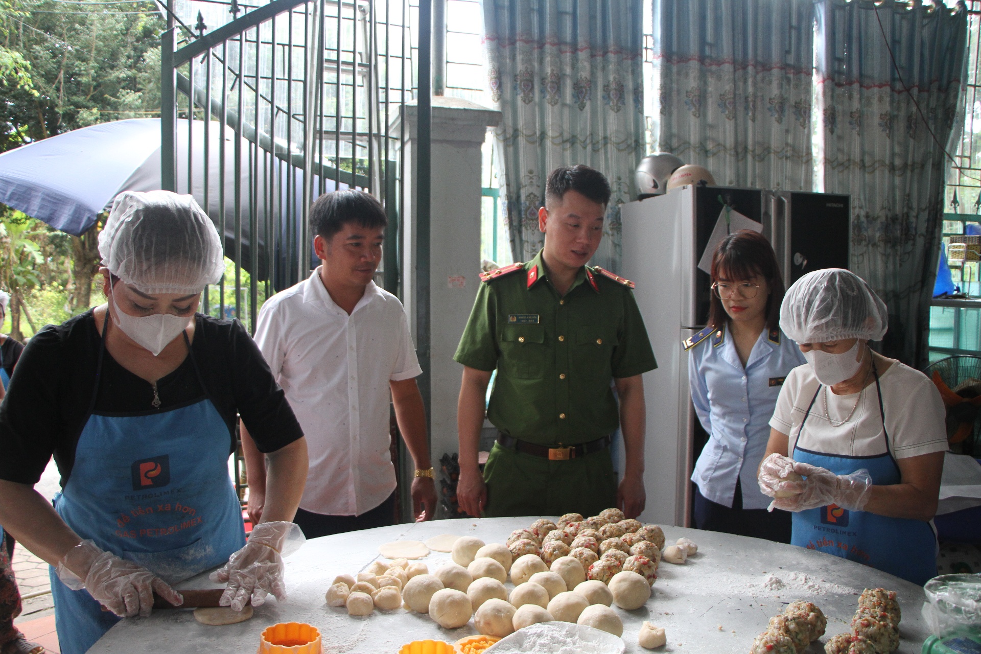 Đoàn kiểm tra liên ngành phường Tân Phong kiểm tra quy trình sản xuất của Cơ sở sản xuất bánh trung thu Thành Cú