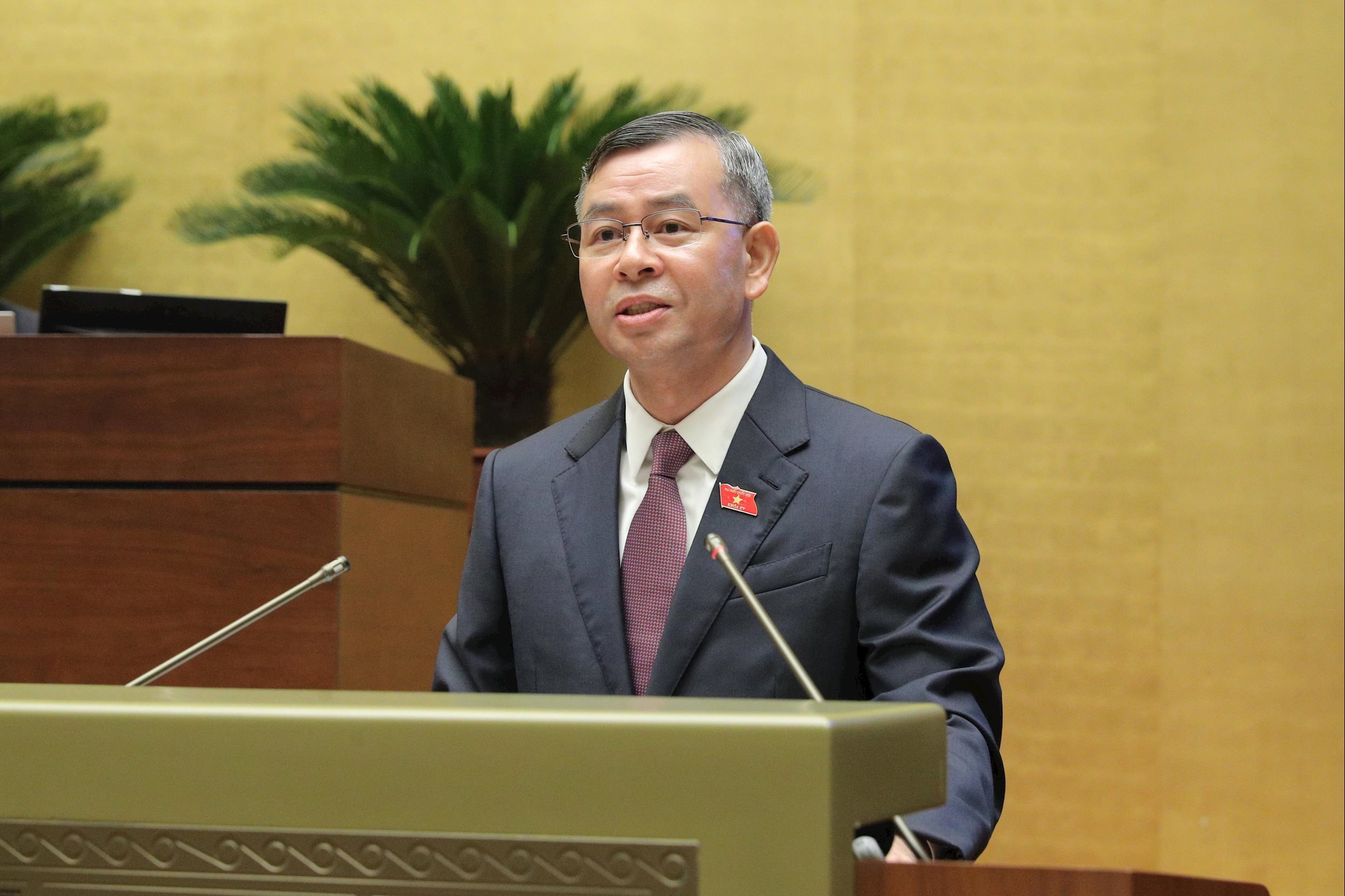 Tổng Kiểm toán nhà nước Ngô Văn Tuấn báo cáo tóm tắt kết quả thực hiện các Nghị quyết của Quốc hội khóa XIV và khóa XV về giám sát chuyên đề và chất vấn của Kiểm toán nhà nước. Ảnh: Hồ Long