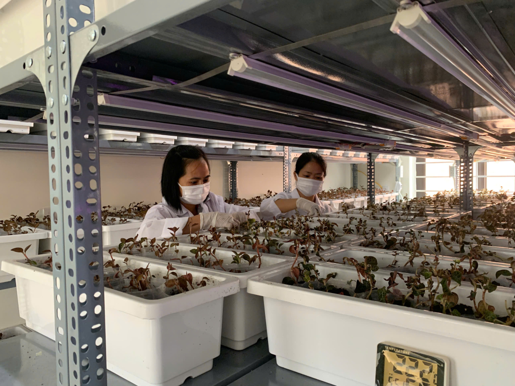 Trung tâm tiếp nhận chuyển giao quy trình nhân giống, chăm sóc lan kim tuyến, lan hồ điệp từ Viện Ứng dụng công nghệ.