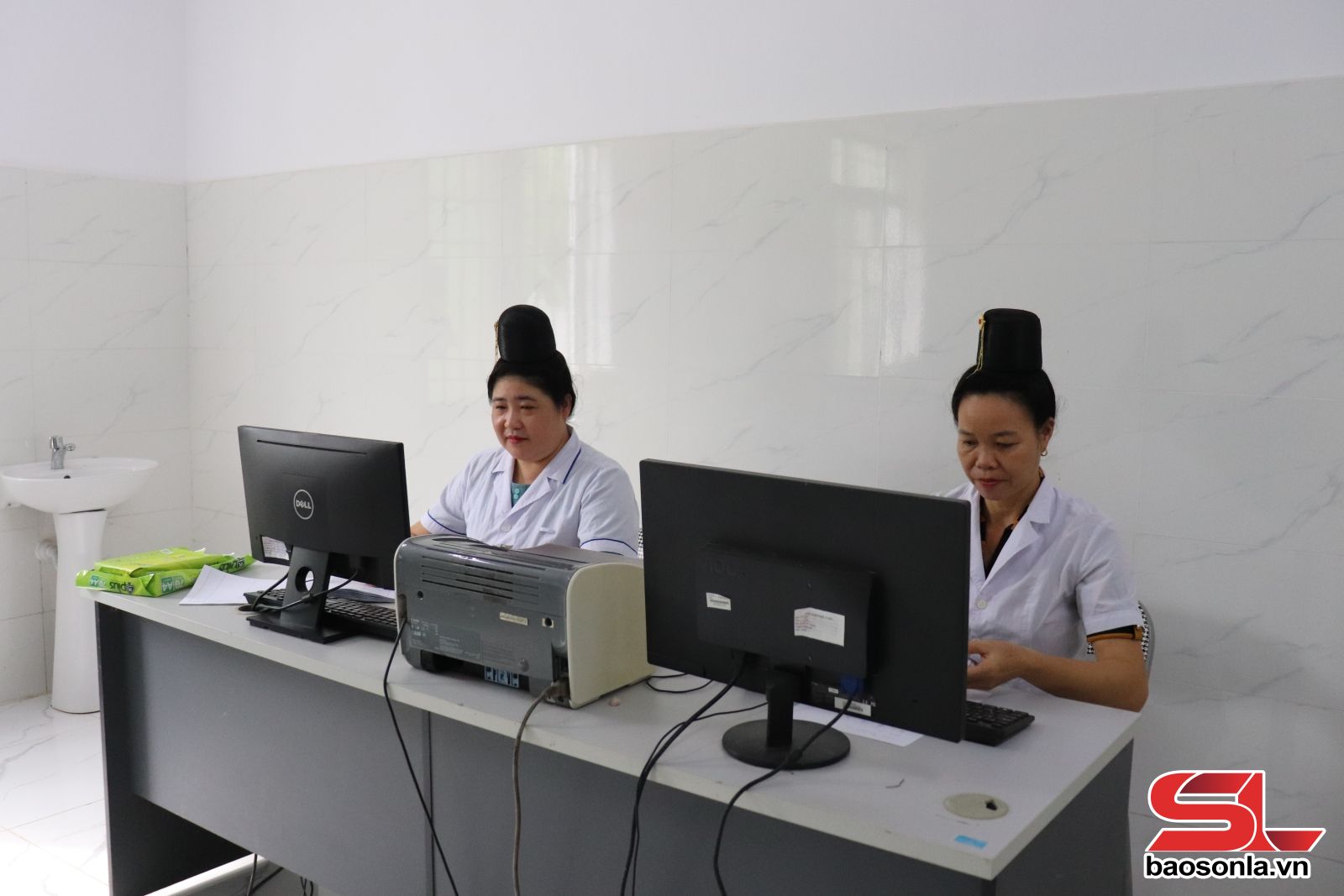 Cán bộ điểm Trạm y tế Pi Toong, xã Mường La được cung cấp đầy đủ thiết bị phục vụ công việc.