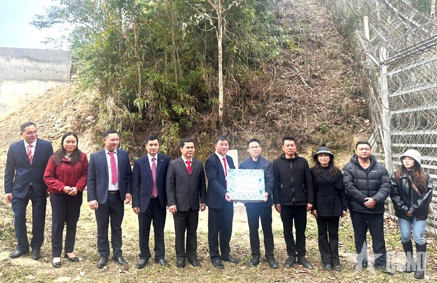Đoàn đại biểu hai bên trao quà, chúc Tết Nguyên đán Bính Ngọ 2026 tại mốc 219 biên giới Việt Nam - Trung Quốc.
