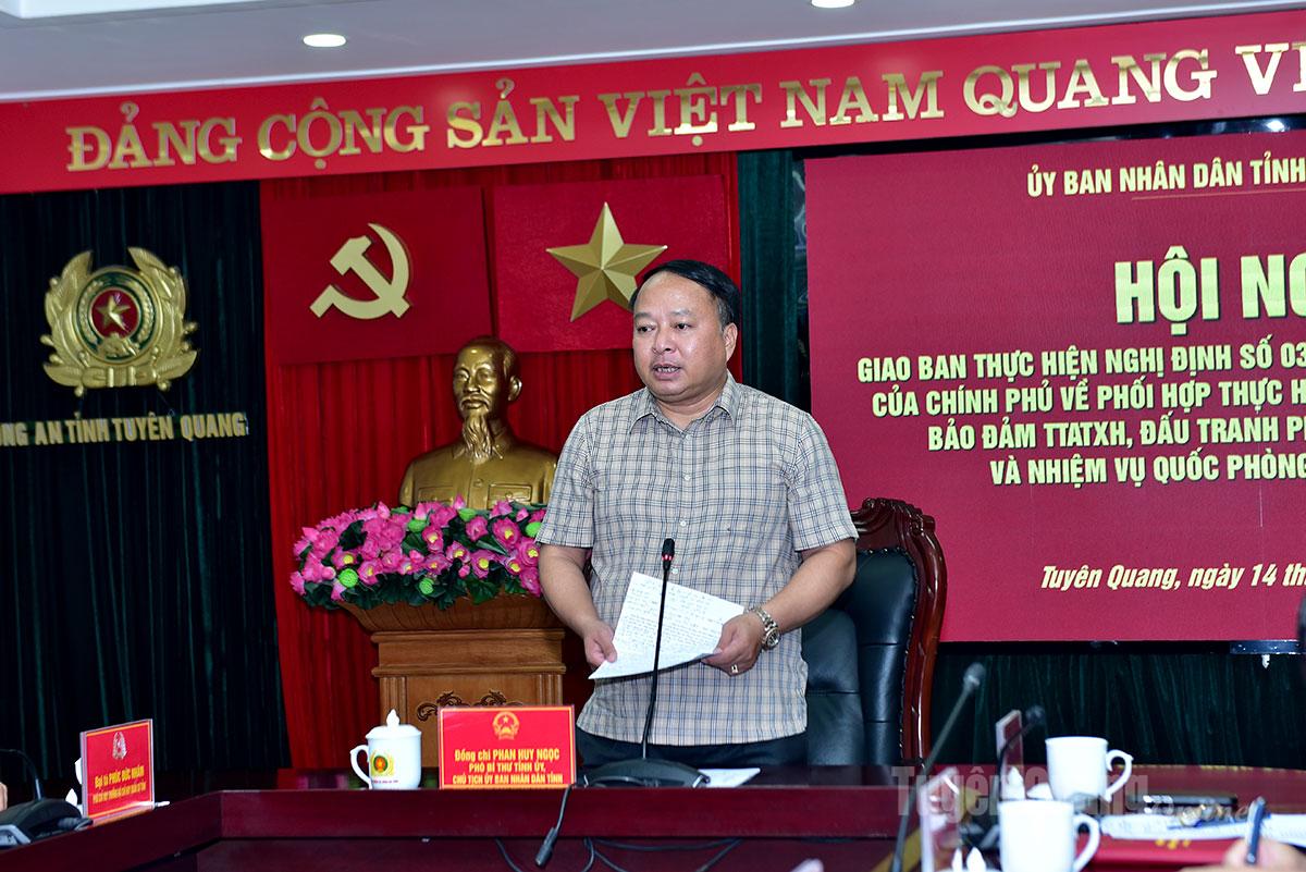 Phát biểu kết luận Hội nghị, đồng chí Chủ tịch UBND tỉnh Phan Huy Ngọc ghi nhận, biểu dương tinh thần trách nhiệm, kết quả phối hợp của lực lượng Công an và Quân sự trong thời gian qua. Đồng chí đề nghị hai lực lượng tiếp tục quán triệt sâu sắc, triển khai hiệu quả các quan điểm, chủ trương của Đảng, chính sách, pháp luật của Nhà nước và của tỉnh về công tác quốc phòng, an ninh, gắn với xây dựng Đảng, xây dựng lực lượng vũ trang nhân dân, trọng tâm là Nghị quyết Đại hội Đảng bộ các cấp nhiệm kỳ 2025-2030.