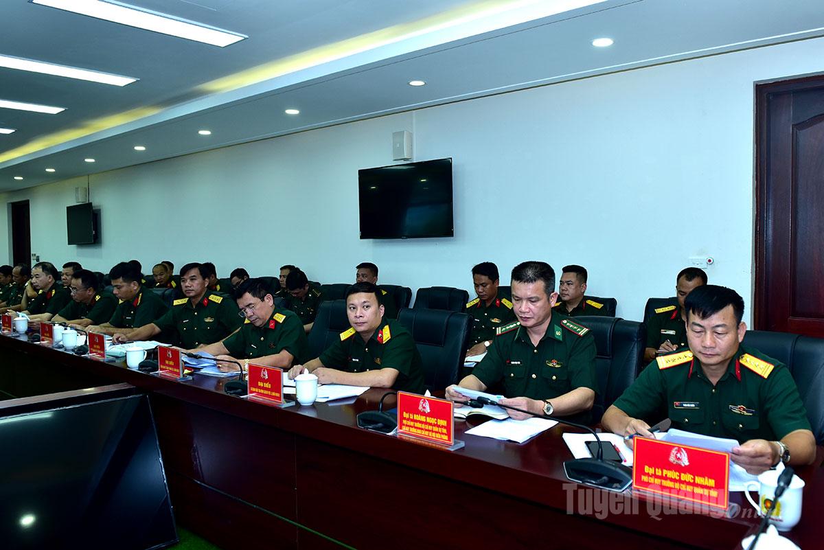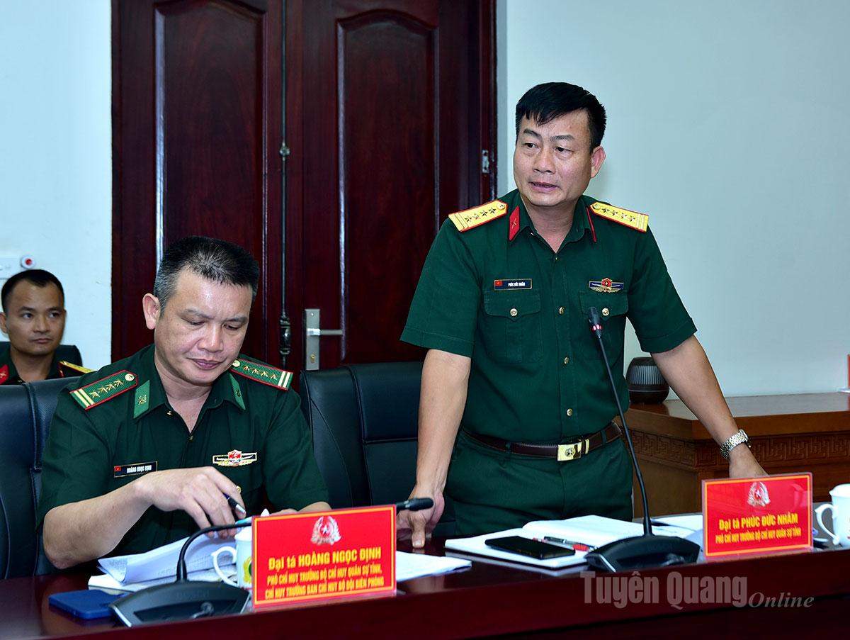 Đại tá Phúc Đức Nhâm, Phó Chỉ huy trưởng Bộ Chỉ huy Quân sự tỉnh đồng chủ trì phần thảo luận tại Hội nghị.