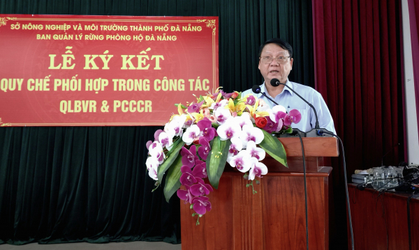 Ông Nguyễn Hữu Phước, Phó Giám đốc BQL RPH Đà Nẵng phát biểu tại Lễ ký kết.