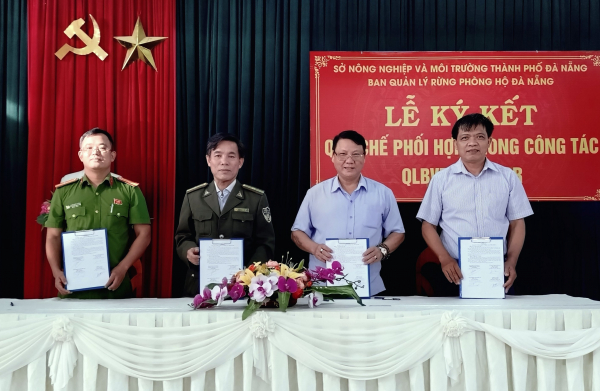 BQL RPH Đà Nẵng ký kết Quy chế phối hợp với lực lượng Kiểm lâm, UBND và Công an xã Duy Xuyên.