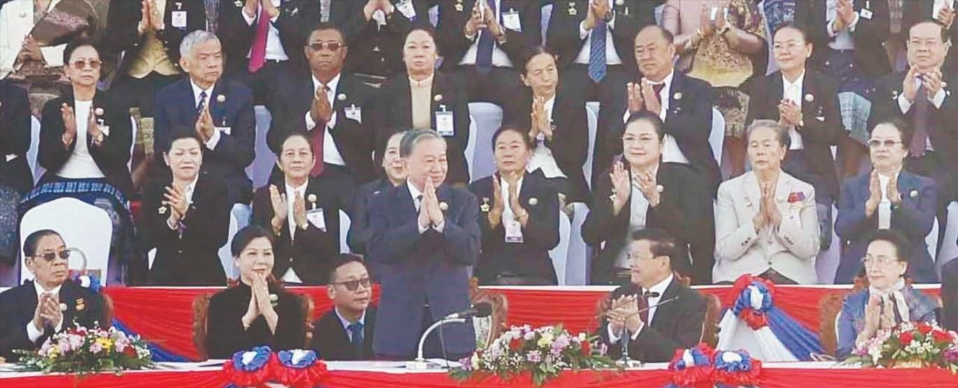Tổng Bí thư Tô Lâm và phu nhân dự lễ kỷ niệm 50 năm Quốc khánh Lào. Ảnh: TTXVN