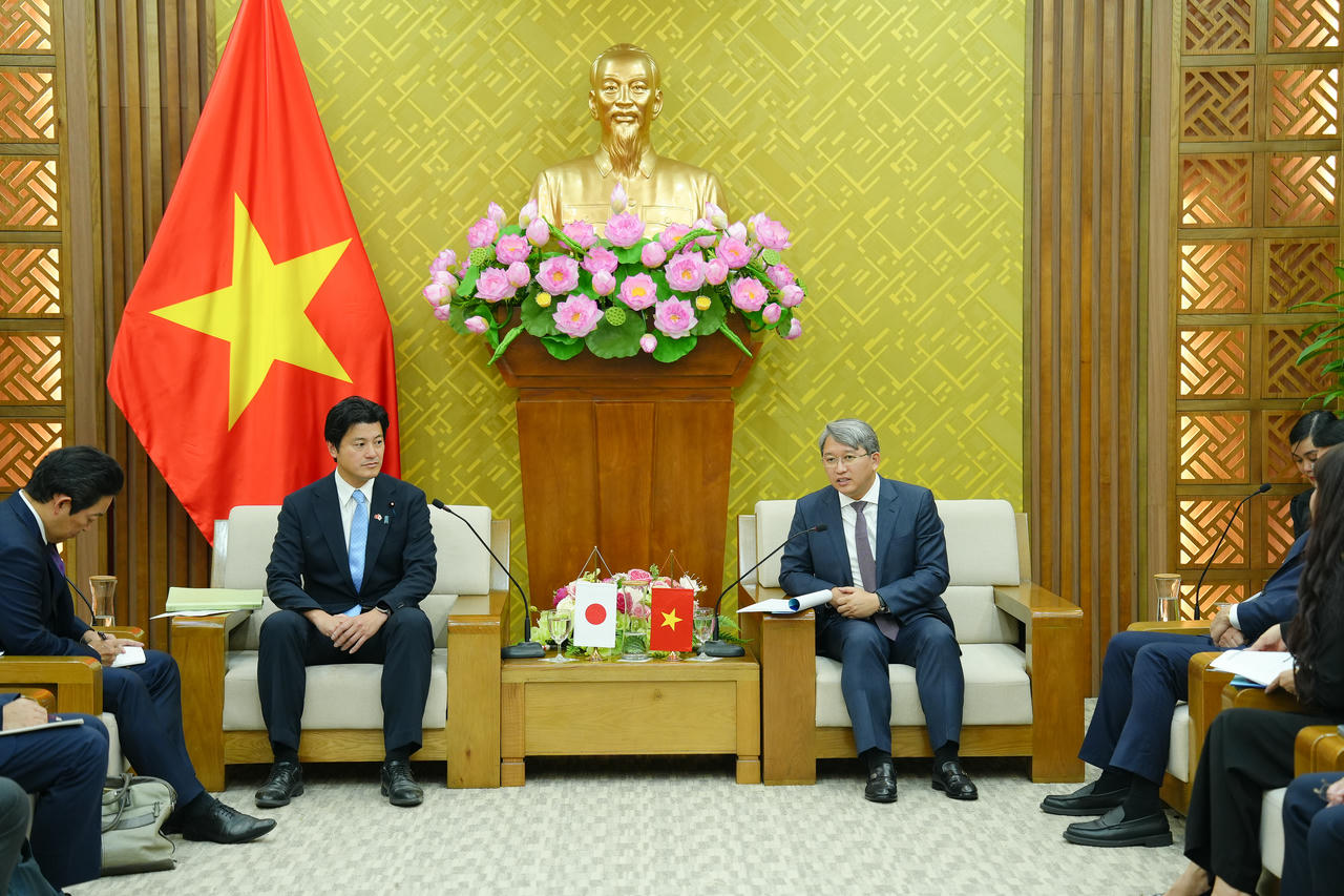 Bộ trưởng Bộ Tư pháp Nguyễn Hải Ninh tiếp Thứ trưởng Bộ Tư pháp Nhật Bản Mitani Hidehiro.