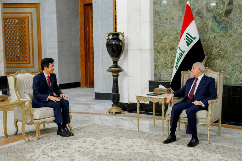 Sáng 8/10, tại Phủ Tổng thống Iraq, Đại sứ Đặc mệnh toàn quyền nước Cộng hòa Xã hội chủ nghĩa Việt Nam tại Cộng hòa Iraq Nguyễn Lương Ngọc đã trình Thư ủy nhiệm lên Tổng thống Cộng hòa Iraq Abdul Latif Jamal Rashid.