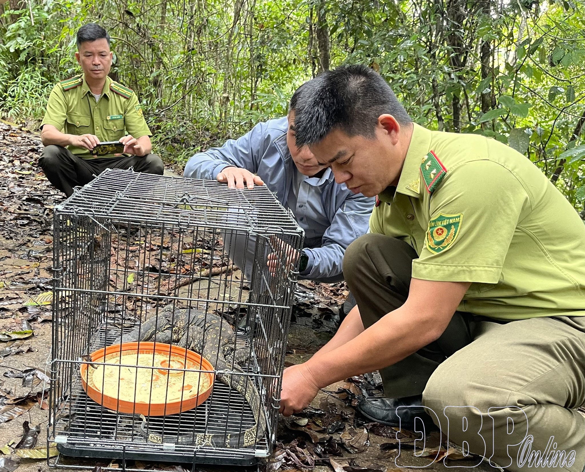 Ban quản lý Khu dự trữ thiên nhiên Mường Nhé phối hợp với Hạt Kiểm lâm Điện Biên Phủ thả 1 cá thể Kỳ đà hoa ra môi trường tự nhiên.