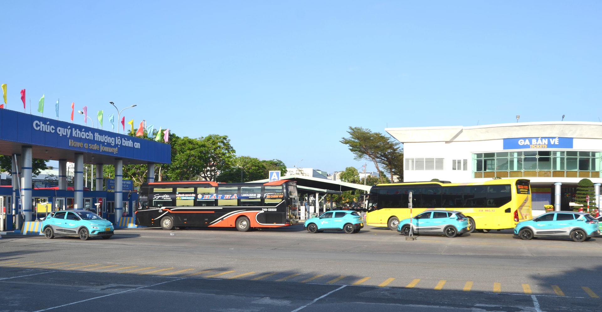 Phương tiện ra - vào Bến xe Trung tâm Đà Nẵng. Ảnh: CÔNG TÚ