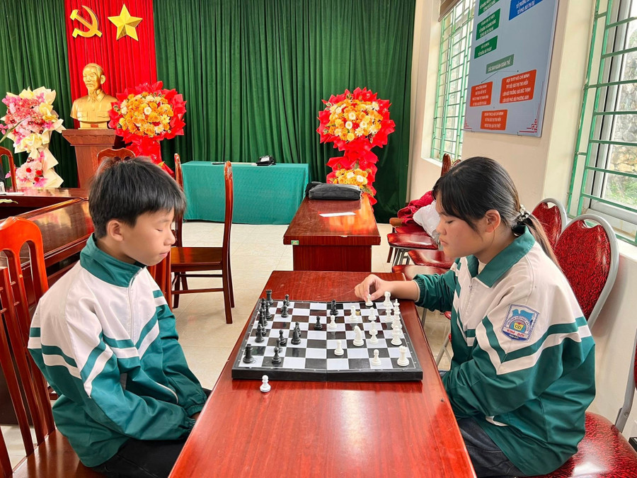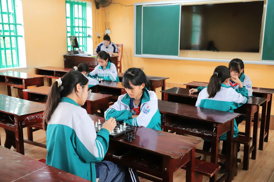 Học sinh tham gia thi đấu bộ môn Cờ vua.