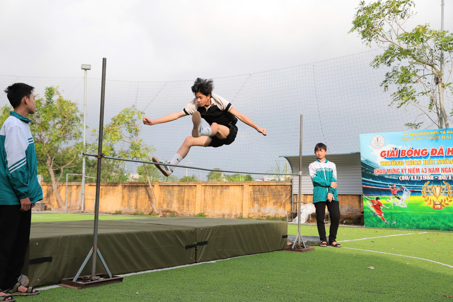 Học sinh Trường THCS Hải Xuân tham gia thi đấu môn Nhảy cao.
