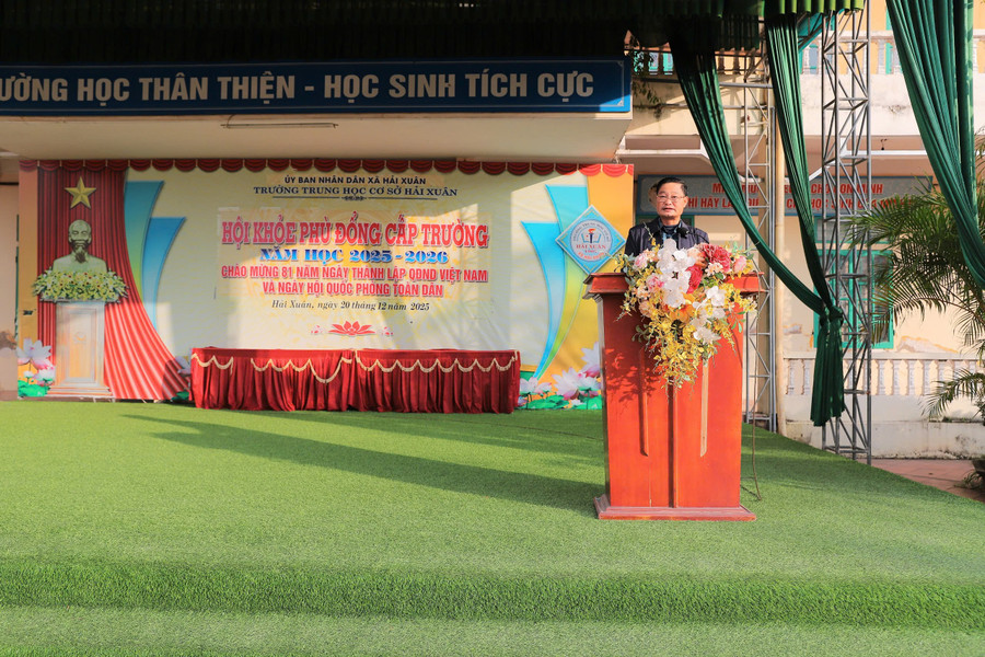 Sáng 20/12, Trường THCS Hải Xuân (xã Hải Xuân, Ninh Bình) tổ chức Hội khỏe Phù Đổng cấp trường năm học 2025-2026 với nhiều hoạt động phong phú dành cho học sinh. Sự kiện nhằm chào mừng 81 năm Ngày thành lập QĐND Việt Nam, 36 năm Ngày hội Quốc phòng toàn dân.