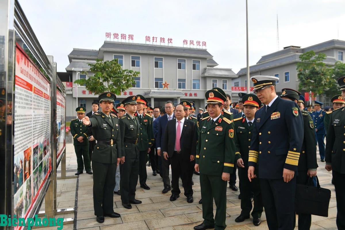 Tiếp đó, hai Bộ trưởng cùng đoàn đại biểu đã đến thăm Đồn Biên phòng Trà Cổ, Bộ đội Biên phòng tỉnh Quảng Ninh, đơn vị có nhiều hoạt động phối hợp quản lý, bảo vệ biên giới với Bộ đội Biên phòng địa khu Phòng Thành, Quân Giải phóng nhân dân Trung Quốc. Theo Trung tá Lục Chinh Đức, Đồn trưởng Đồn Biên phòng Trà Cổ, những năm qua, hai đơn vị luôn duy trì nền nếp chế độ hội đàm, gặp gỡ, trao đổi thông tin, tình hình liên quan đến công tác quản lý, bảo vệ biên giới. Trung tá Lục Chinh Đức cho biết, trong thời gian tới, hai đơn vị sẽ tiếp tục phối hợp chặt chẽ trong công tác quản lý, bảo vệ biên giới, tăng cường và làm sâu sắc hơn mối quan hệ hữu nghị, đoàn kết, hợp tác ngày càng thực chất, hiệu quả.