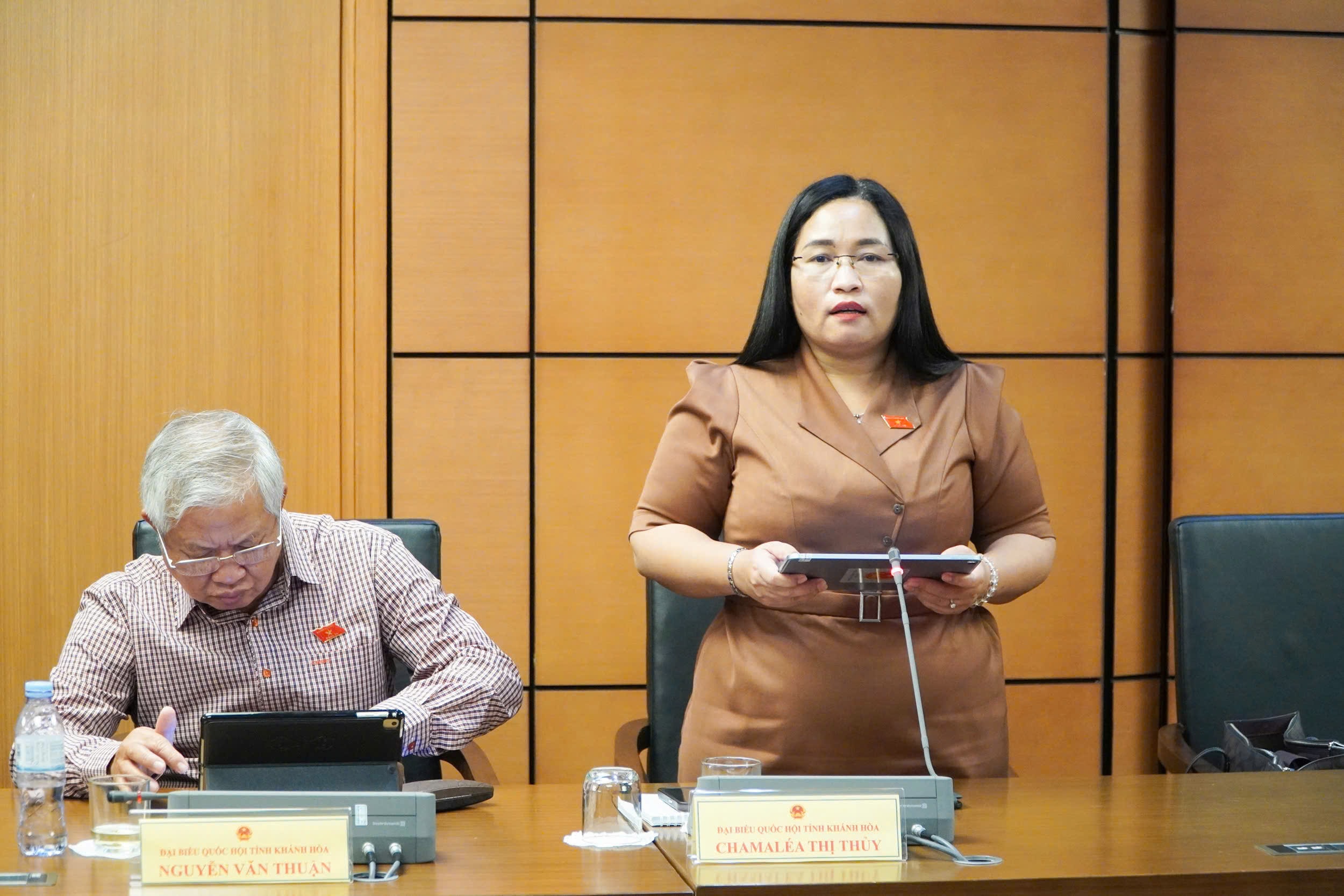 Đại biểu Chamaleá Thị Thủy (Khánh Hòa) phát biểu tại tổ
