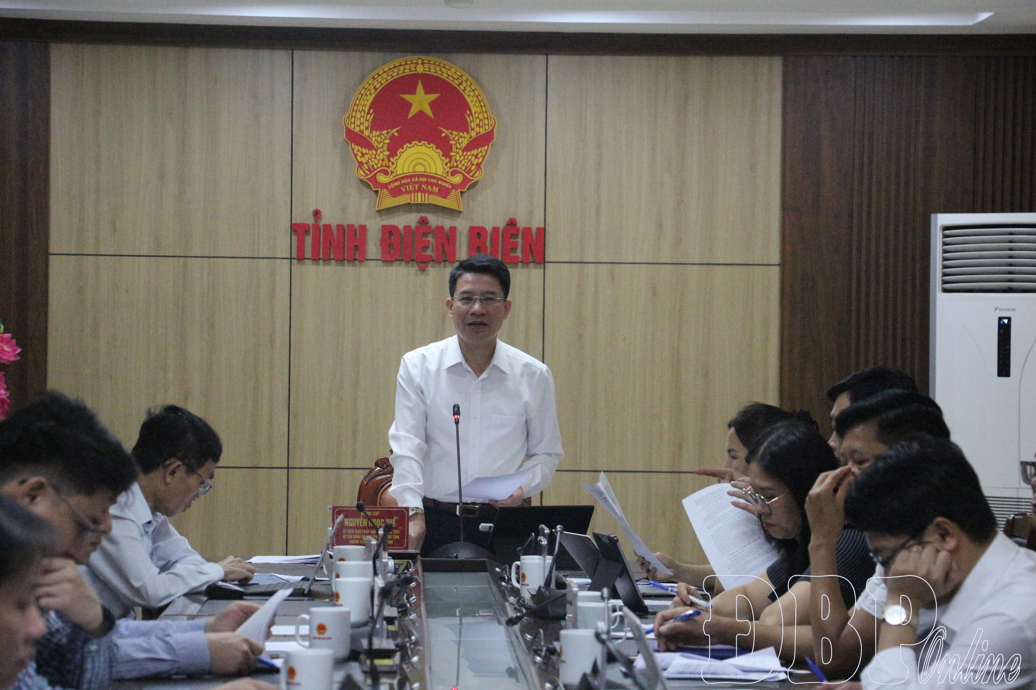 Đại diện Trung tâm Dịch vụ hành chính công báo cáo triển khai thủ tục hành chính (TTHC) thực hiện cơ chế “Luồng xanh” trên địa bàn tỉnh Điện Biên.