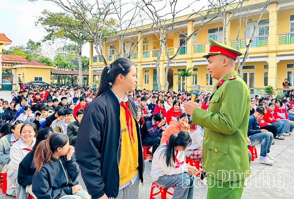 Lực lượng Công an tăng cường tuyên truyền Luật giao thông tới các em học sinh nhằm xây dựng văn hóa giao thông an toàn, văn minh