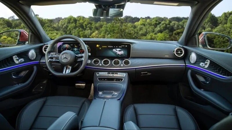 Ở trung tâm bảng táp lô là màn hình giải trí hyperscreen mới thay thế màn hình đôi trên bảng tiền nhiệm. Màn hình cỡ "siêu lớn" khiến cảm giác ngồi bên trong khoang lái của E 300 AMG có phần gợi nhớ đến dòng S-Class đầu bảng của nhà ngôi sao 3 cánh.