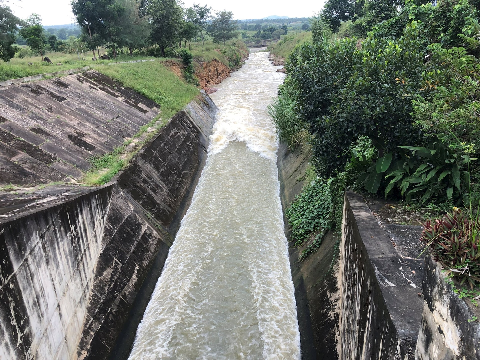 Điều tiết nước qua tràn tại hạ du hồ Cà Giây