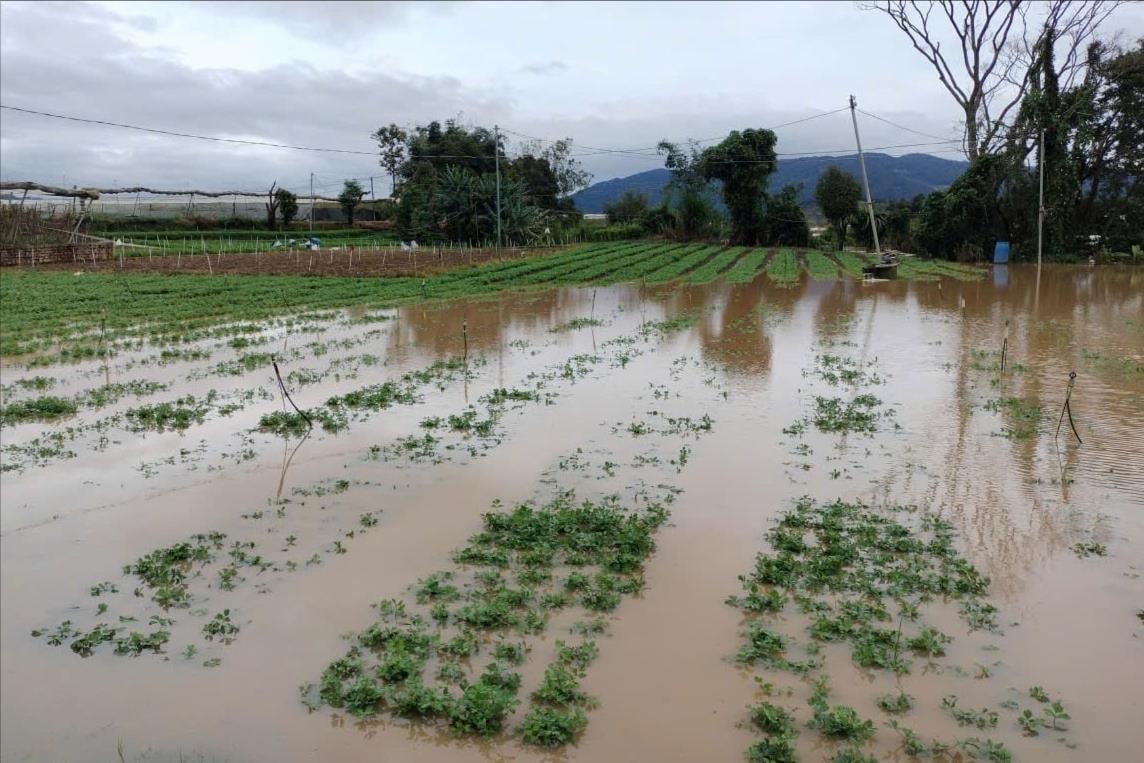Đến 11 giờ trưa nay, khoảng 250 hộ dân bị ảnh hưởng, hàng trăm ha rau màu, hoa và cây trồng ngắn ngày bị ngập úng, sạt lở. Nhiều nhà kính, hệ thống tưới tiêu và công trình thủy lợi bị hư hại nặng.