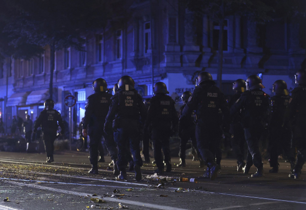Cảnh sát Đức triển khai lực lượng chống bạo động tại một khu dân cư sau khi xảy ra đụng độ đường phố.
