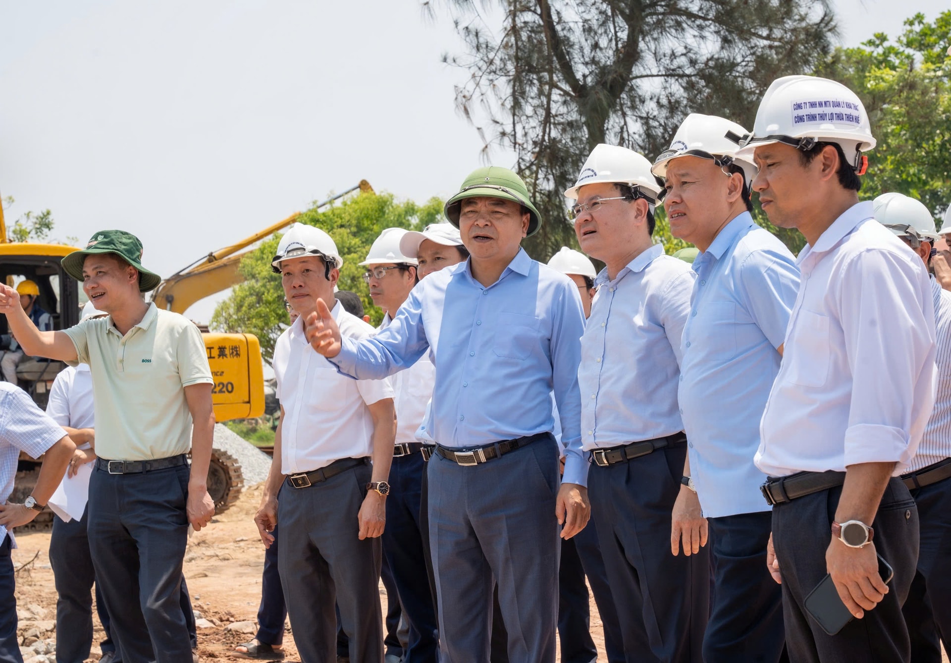 Thứ trưởng Bộ Nông nghiệp và Môi trường Nguyễn Hoàng Hiệp kiểm tra thực tế dự án sửa chữa đập Thảo Long.