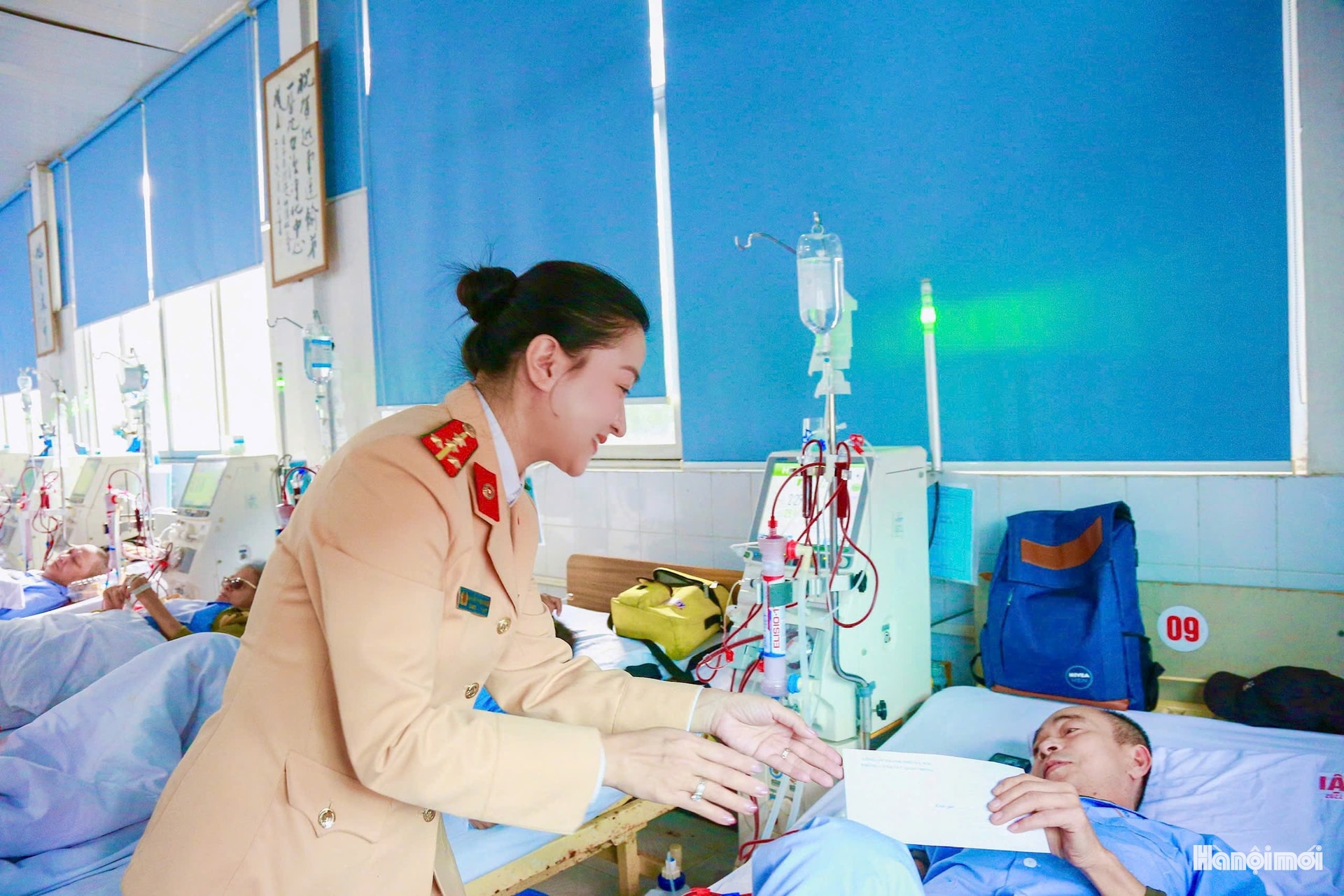 Hoạt động trao quà diễn ra giản dị, không nghi thức cầu kỳ. Các hội viên lần lượt thăm hỏi tình hình sức khỏe, lắng nghe câu chuyện điều trị của từng người. Có bệnh nhân đã gắn bó với phòng chạy thận nhiều năm, có người mới bắt đầu hành trình dài phía trước. Trong sắc phục cảnh sát giao thông, hình ảnh những người phụ nữ ân cần bên giường bệnh tạo nên một điểm nhấn nhân văn giữa không gian vốn quen với sự căng thẳng của điều trị.