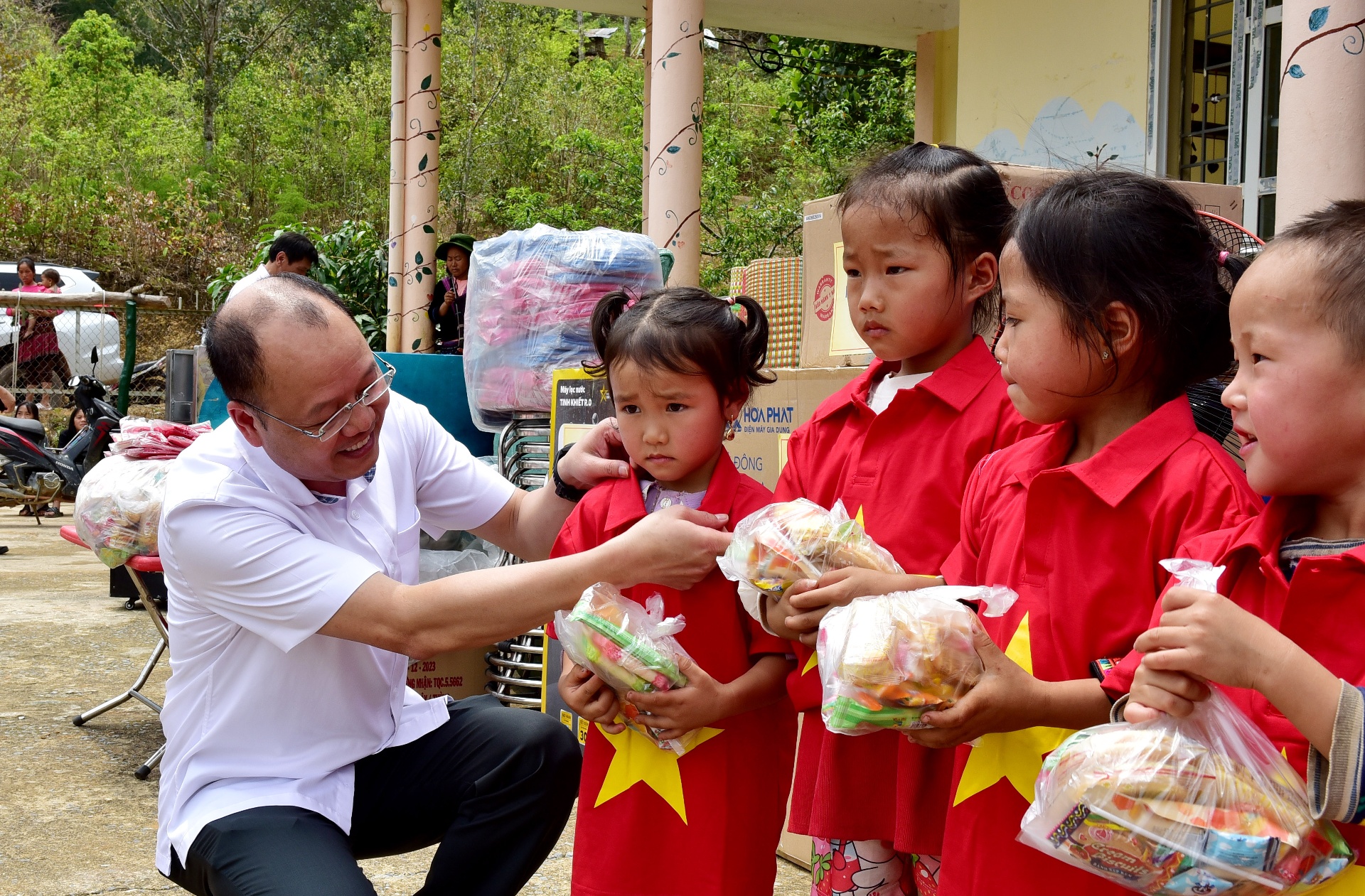 Tại chương trình, đoàn đã trao tặng nhiều phần quà ý nghĩa với tổng giá trị trên 54 triệu đồng. Các phần quà bao gồm: tủ lạnh, nồi cơm điện, chảo điện, quạt điện, máy lọc nước phục vụ sinh hoạt tại điểm trường; cùng với đó là Cờ Tổ quốc, áo cờ đỏ sao vàng, dép, cặp sách, vở, bút và nhiều đồ dùng học tập khác dành cho các em học sinh. Những món quà tuy giản dị nhưng thiết thực, góp phần cải thiện điều kiện dạy và học, đồng thời, động viên tinh thần thầy và trò vùng cao.