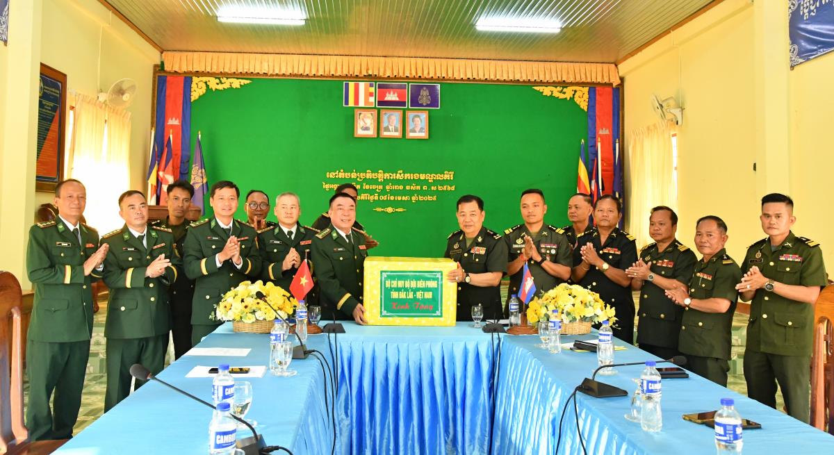 Đoàn công tác Bộ Chỉ huy BĐBP Đắk Lắk chúc mừng năm mới, tặng quà Tiểu khu Quân sự tỉnh Mondulkiri, Campuchia. Ảnh: Ngọc Lân